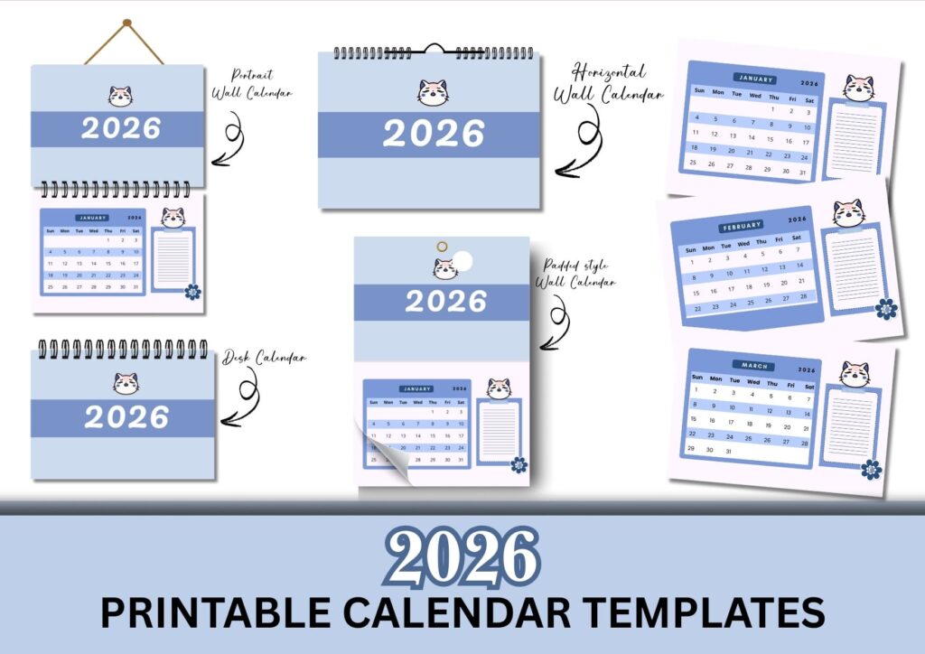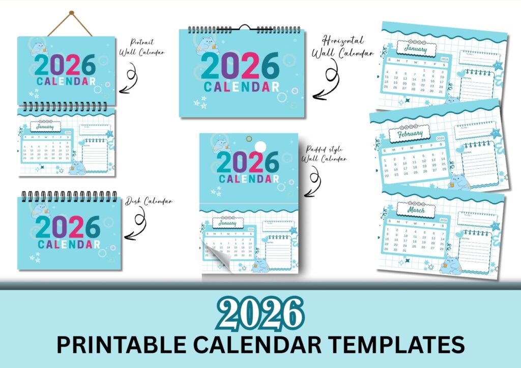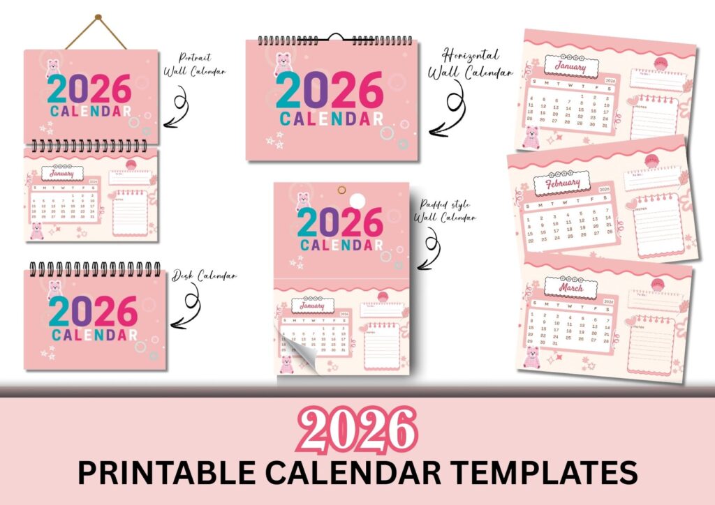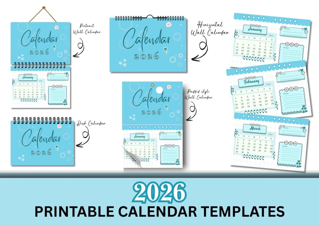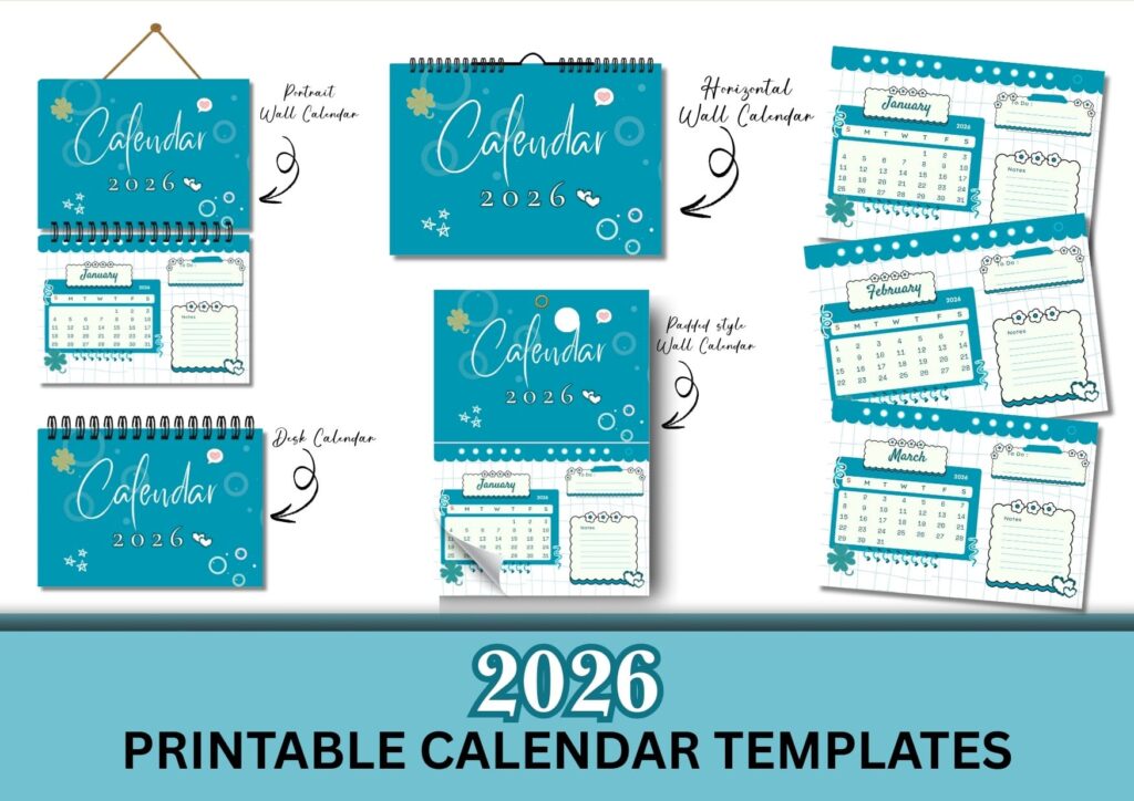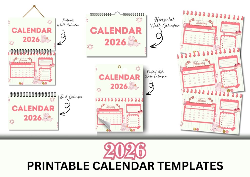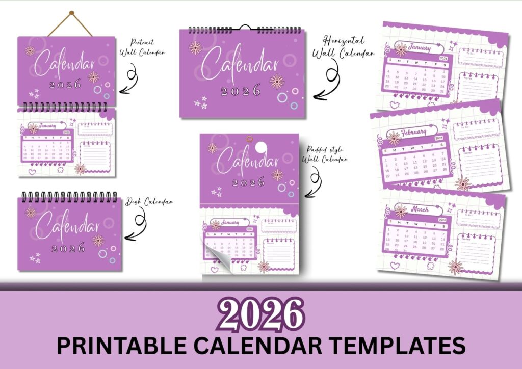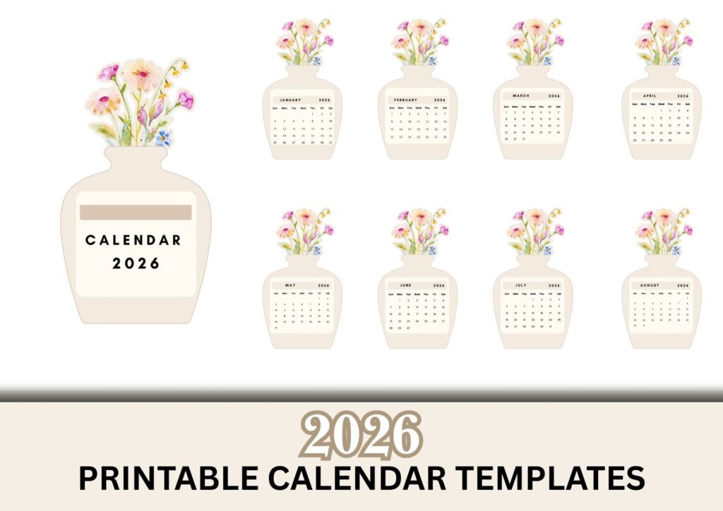 Printable Calendar Templates 2026 – 40 Cute & Aesthetic Designs!