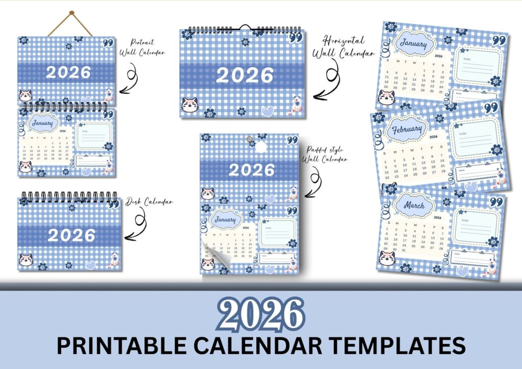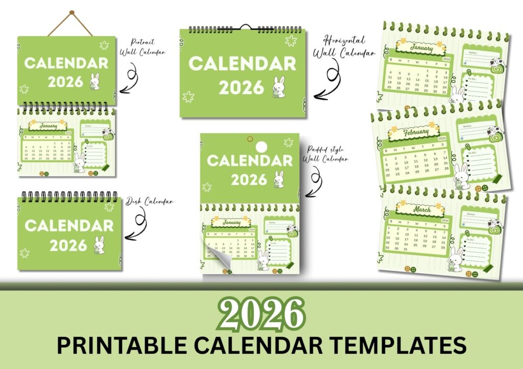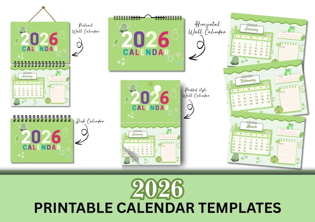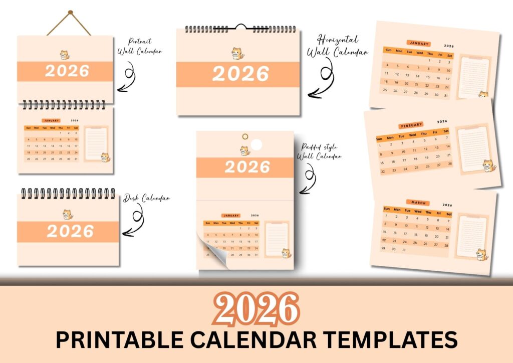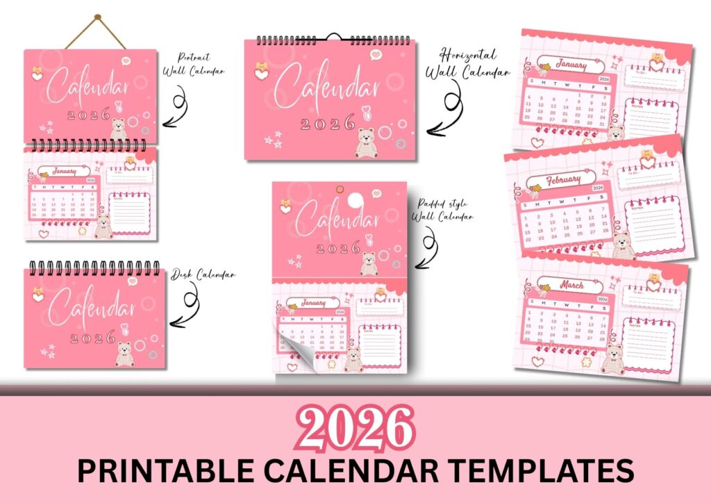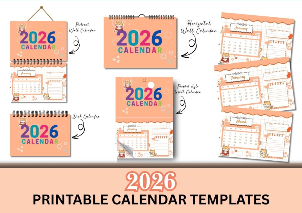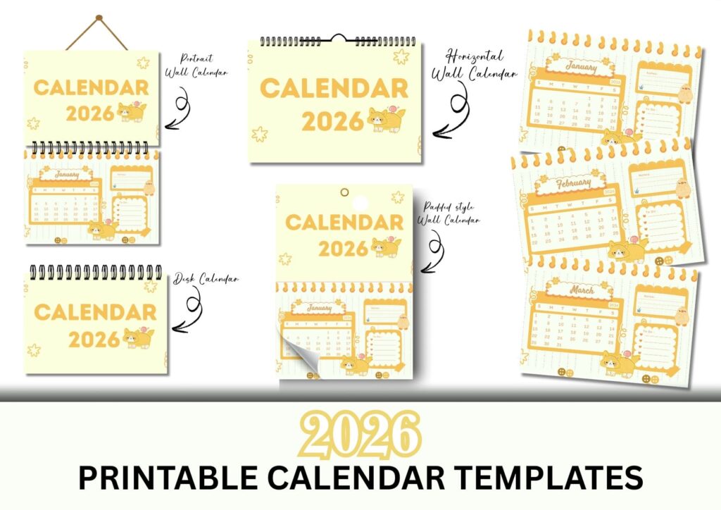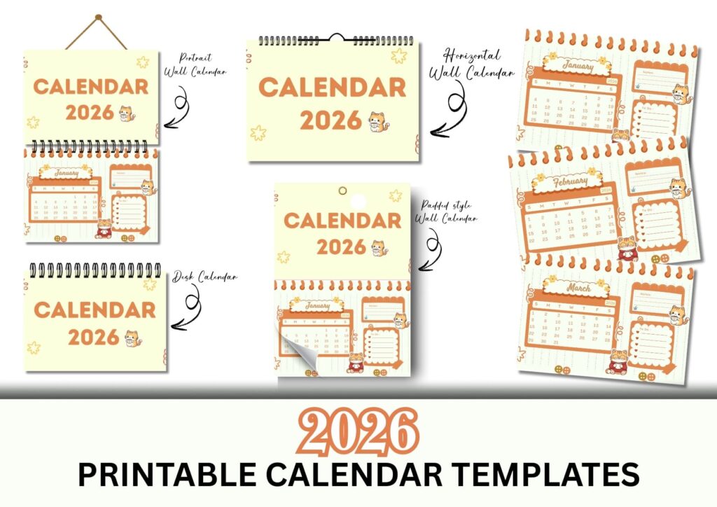 Printable Calendar Templates 2026 – 40 Cute & Aesthetic Designs!