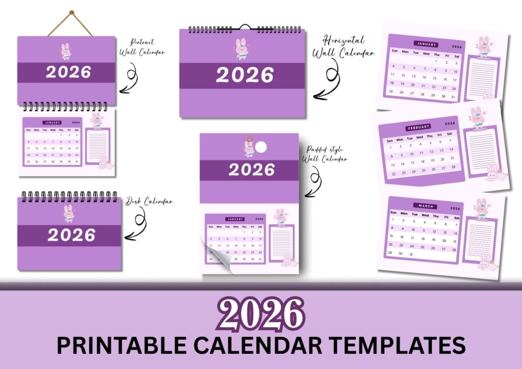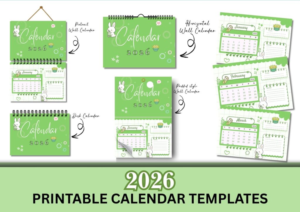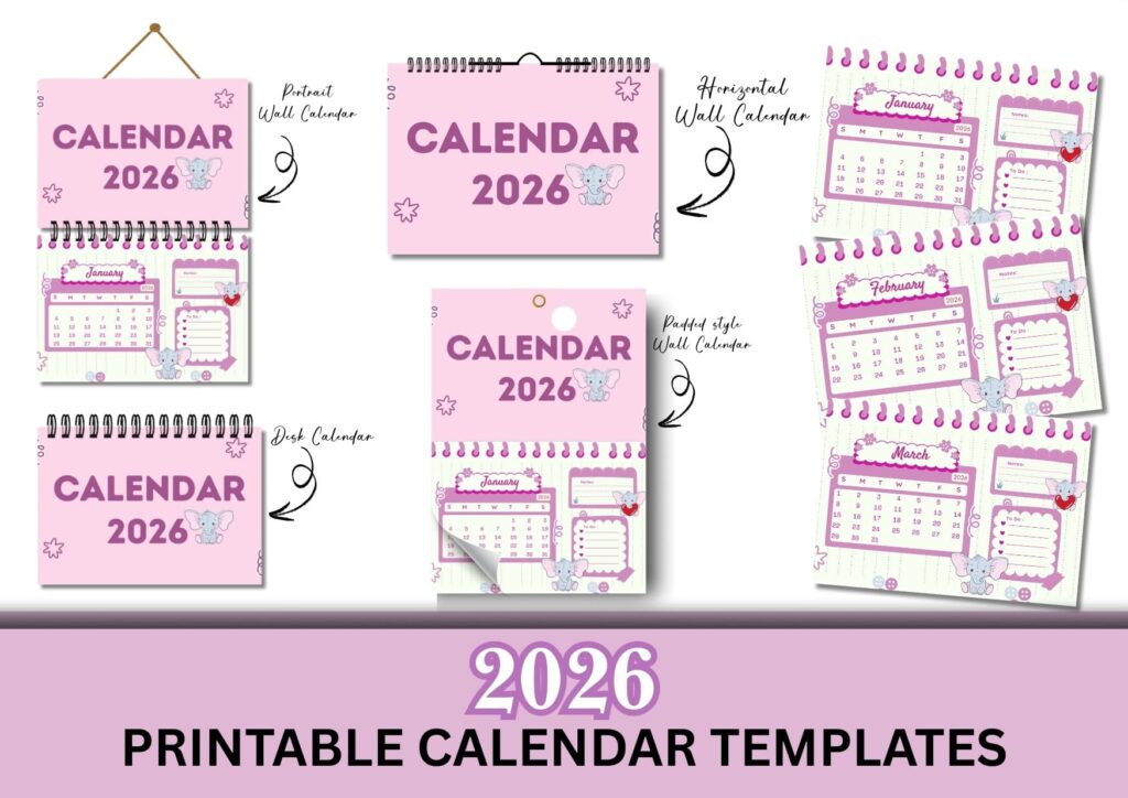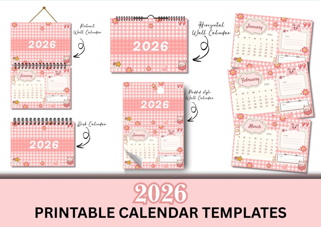 • ✨ Includes 40+ high-quality calendar templates for 2026 in cute & aesthetic designs – mini calendars, desk calendars, floral themes, animals, pastel styles, and more.