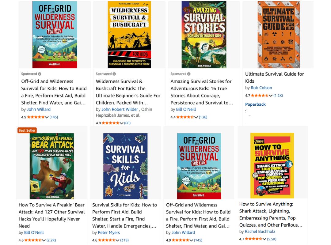 When you browse categories such as “Children’s Activity Books,” “Creative Writing,” “Life Skills for Kids,” “Confidence & Problem-Solving,” and “Imagination & Play,” you’ll consistently see survival-focused titles appearing on the first page — with both new and established authors releasing fresh books every week. From Write Your Own Survival Story and Kid Survival Journals to scenario-based activity books, demand continues to rise.