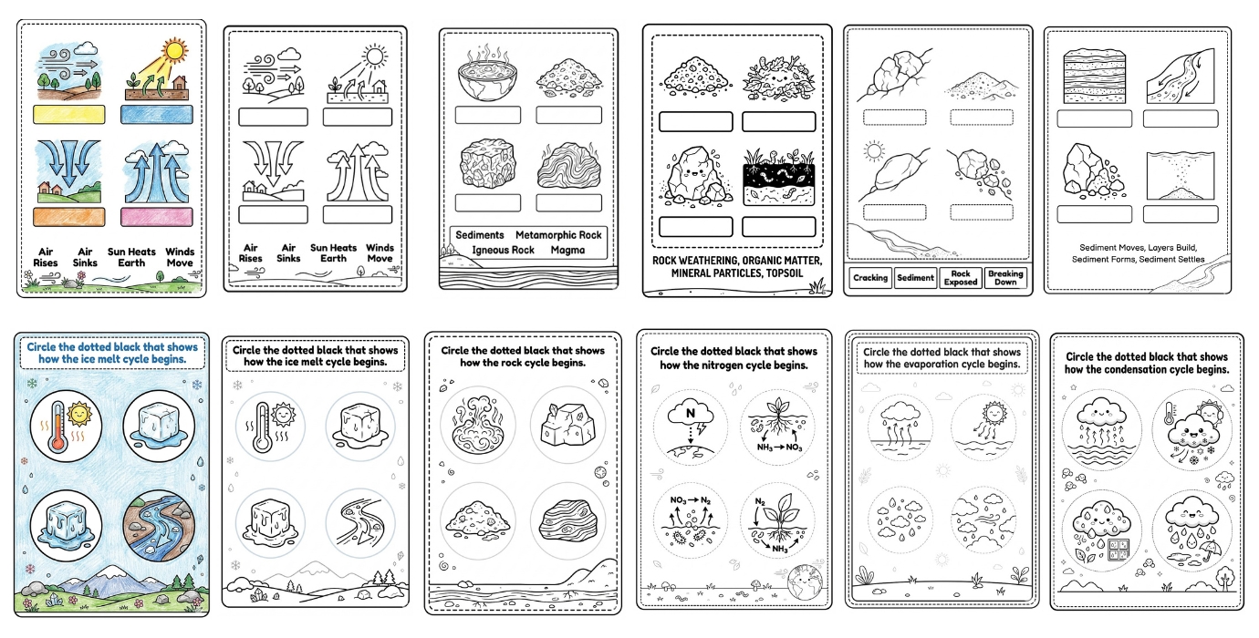 Includes 1604 engaging, kid-safe life cycle prompts focused on nature and the environment, covering plants, insects, weather patterns, ecosystems, and everyday natural transformations. Activities guide children to identify stages of growth, arrange life cycles in the correct order, recognize patterns in nature, spot what does NOT belong, and understand simple cause-and-effect relationships step by step. Simply copy the prompt, paste it into ChatGPT or Gemini Pro, and instantly generate a complete printable life cycle activity — while helping kids build observation skills, logical thinking, environmental awareness, focus, and confidence in a calm, structured way. Each prompt is easy to customize for worksheets, classroom learning, homeschooling, science centers, creative practice, or your own KDP, Esty activity book projects — turning natural science into an interactive discovery experience instead of a dry lesson.