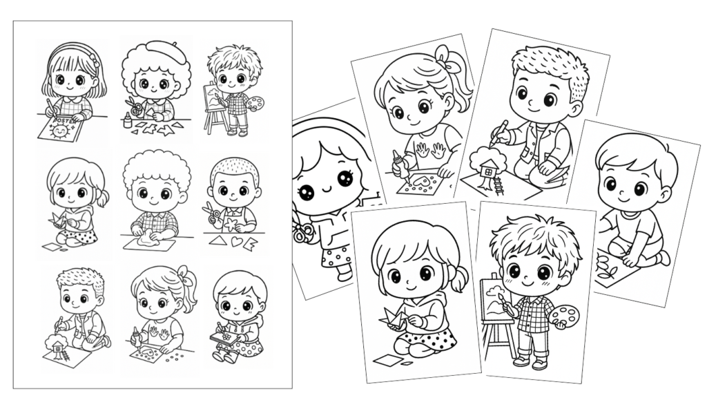 🧩 From joyful coloring pages to drawing ideas, cut-and-paste crafts, pattern tracing, and imaginative play scenes — all beautifully crafted as kid-friendly prompts that spark creativity, focus, and fun!