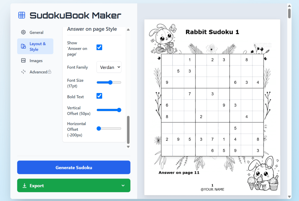 With precise control over the flow of your pages, your Sudoku book will have a consistent, professional, and print-ready finish from start to end.